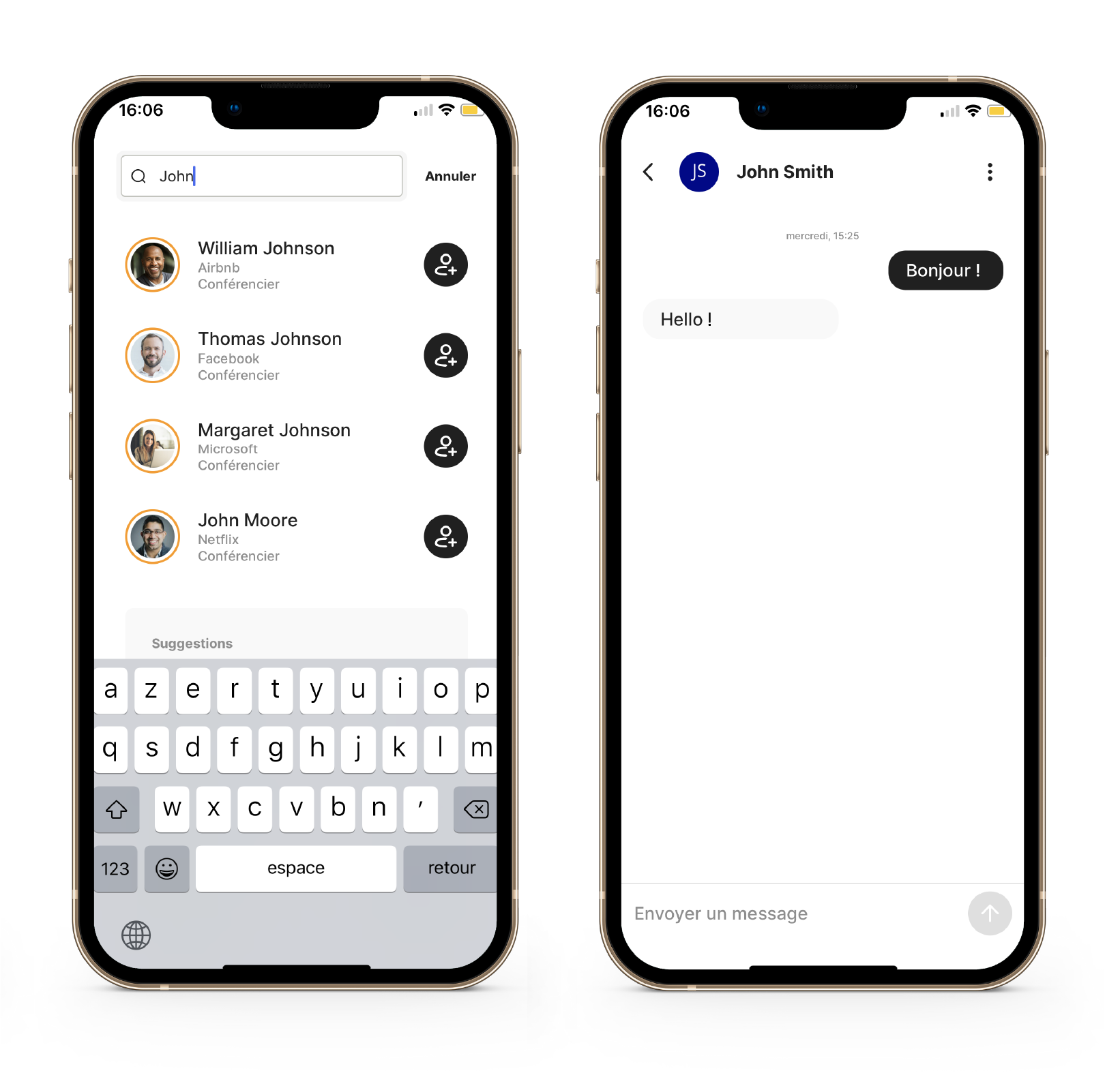 - Notification des participants en cas de demande de contact ou de nouveau message.